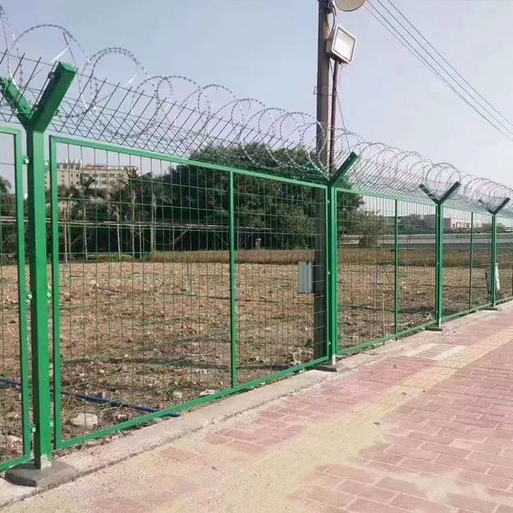 2、鋼網(wǎng)墻采用網(wǎng)格型網(wǎng)片,網(wǎng)孔尺寸:5cmX10cm,蕊絲直徑5mm,網(wǎng)片采用日字型邊框的隔離網(wǎng),網(wǎng)片與立柱之間用防盜螺栓固定。整個(gè)鋼網(wǎng)墻是由:立柱、網(wǎng)墻網(wǎng)片、蛇腹型刀刺網(wǎng)及安裝附件組成,整體漫塑。