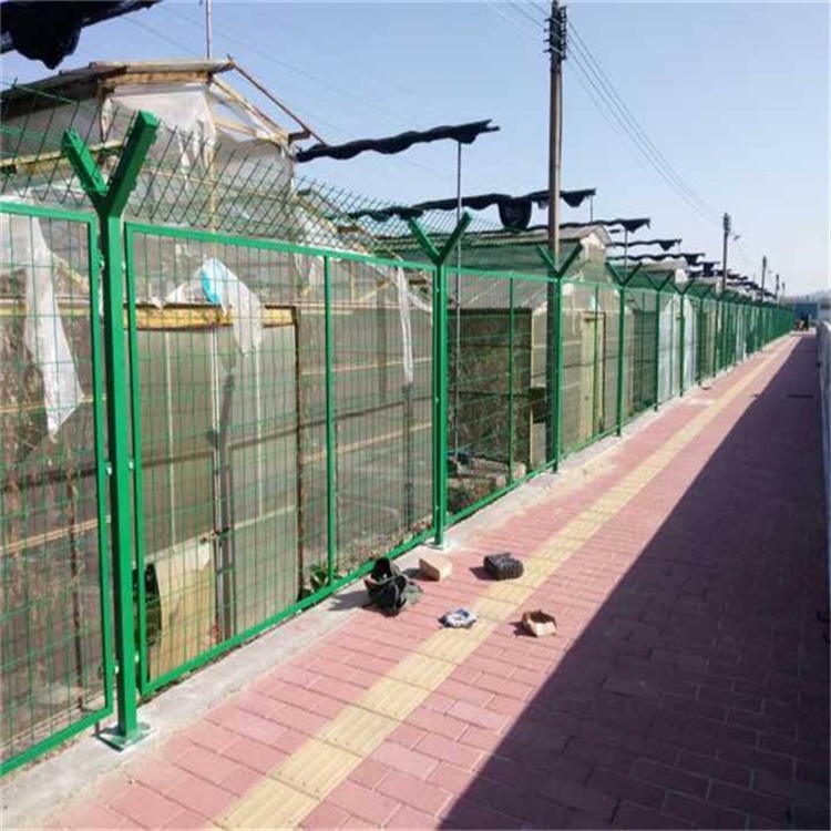 院墻圍欄網(wǎng)是將網(wǎng)片焊接在邊框上的外形而得名,防沖撞性能優(yōu)越,比一般的圍欄承受能力要強(qiáng),美觀、使用壽命長(zhǎng)、不變形、安裝快捷只需用螺絲連接固定住立柱與網(wǎng)片即可,浸塑表面處理產(chǎn)品防腐性能強(qiáng),使用年限長(zhǎng),造價(jià)低,是一種較為理想的金 屬?lài)鷫ψo(hù)欄。