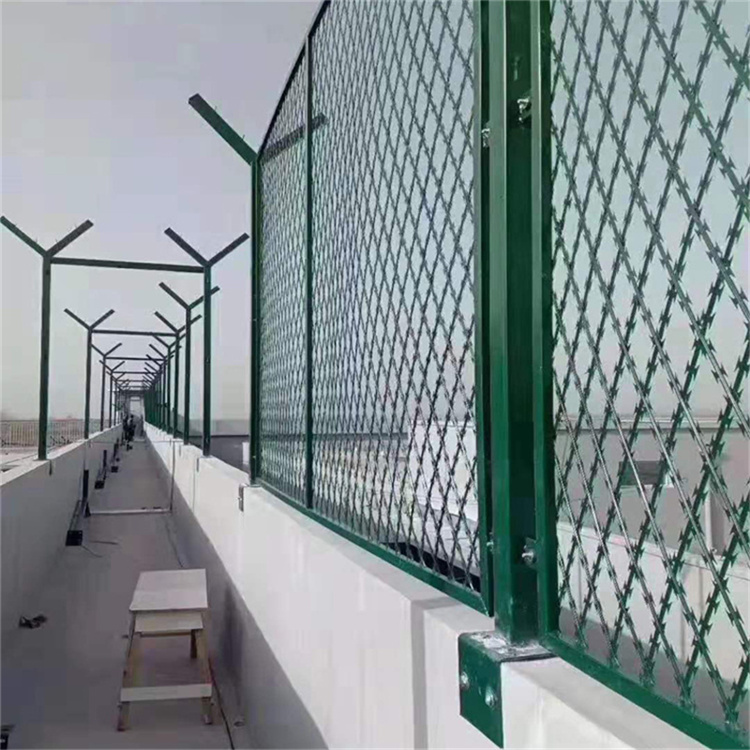 看守所巡邏道加高防攀爬隔離網(wǎng),頂部加裝刀刺網(wǎng)。近幾年常用的就是焊接刀刺片的隔離網(wǎng),中間是刀刺焊接的網(wǎng)片,常用規(guī)格為75*150*2.5mm;四周焊接邊框,邊框常用規(guī)格為20*30mm;立柱選用60*60mm、80*80mm方管,巡邏道側(cè)面固定和頂部固定,隔離網(wǎng)頂部再加裝螺旋刀刺網(wǎng),防爬效果更好。
