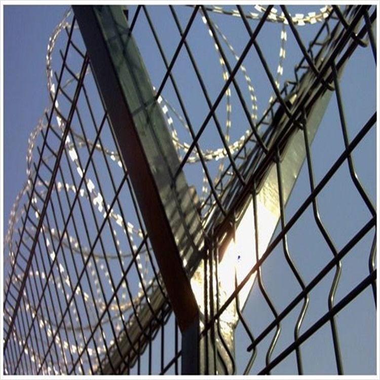 Y型立柱防護網(wǎng)由于在頂端使用V型支架而得名;近些年來通常在機場、監(jiān)獄、軍事重地等地使用,為了更好的提高防護性能,都會在網(wǎng)片中添加加強型焊接網(wǎng)片以及防盜連接裝置,V型支架則是為了放置刀片刺繩,在頂端安裝刀片刺繩可防止不法人員攀登,還可以通電防護性能更強,不過通電請作出提示,以免出現(xiàn)意外事故。