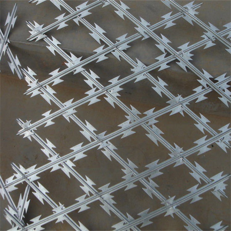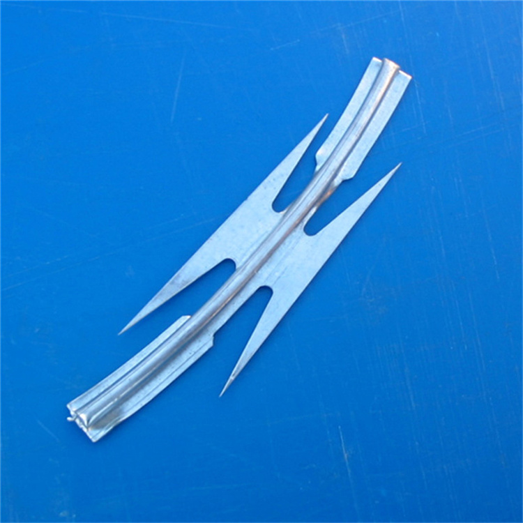 螺旋型交叉式刀片刺絲是在兩條刀片刺絲之間以不銹鋼片和鍍鋅鋼片強(qiáng)力夾和,展開后即成交叉狀,取其美觀又實(shí)用。