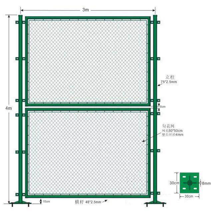 艾瑞絲網(wǎng)廠(chǎng)家生產(chǎn)的球場(chǎng)護(hù)欄網(wǎng),主要認(rèn)為合適而使用安全性強(qiáng)的防撞傷式勾型網(wǎng),橫梁多為60mm的圓柱,立柱多為75mm圓柱,網(wǎng)面為菱形防劃傷型美化網(wǎng)。