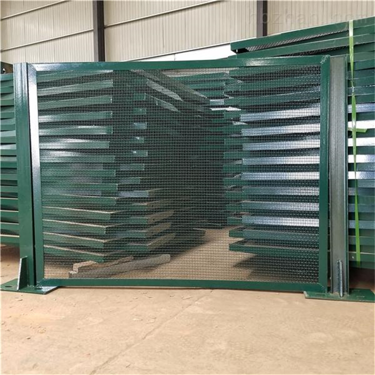 高鐵鐵路專用防拋網(wǎng)按照 標(biāo)準(zhǔn)使用3mm熱鍍鋅絲編制成正方形孔或者菱形孔,網(wǎng)孔5*5mm,箱梁橋防落網(wǎng)間距2000mm,高度2500mm,上下橫梁采用50*32*4mm角鋼各一根,中部豎撐使用50*4mm扁鐵固定,立柱規(guī)格為100*63*4.5mm工字鋼焊接160*200*12mm鋼板法蘭,法蘭孔位對(duì)應(yīng)已經(jīng)固定好的預(yù)埋螺栓緊固。金屬防拋網(wǎng)片、立柱及其他緊固件要求熱鍍鋅后靜電噴涂成墨綠色或灰色,顏色亮麗、線性美觀、整齊劃一。