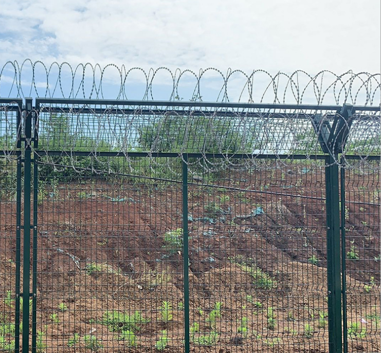 機場隔離網(wǎng)的安裝要求護欄網(wǎng)的整體安裝高度要3米以上,網(wǎng)片與網(wǎng)片間隙不能大于10公分,立柱與網(wǎng)片連接離地部分不能大于5公分,立柱垂直高度為3.5米,每套安裝整齊劃一,機場隔離網(wǎng)上部分采用60直徑的熱鍍鋅刀片刺繩,刺繩的刀片與刀片間隔為20cm。正常的情況下每米出1.2kg左右的刺繩。安裝的同時采用卡扣卡在V型網(wǎng)上面。這樣有利于熱鍍鋅刀片刺繩的穩(wěn)固性能。