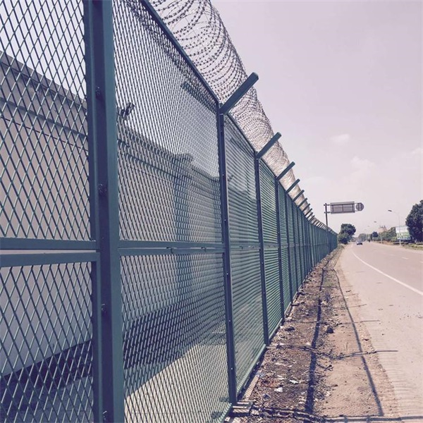 監(jiān)獄圍墻鋼絲網(wǎng)通常采用鋼絲直徑為5mm、6mm、6.5mm,網(wǎng)孔采用50mm*100mm、50mm*50mm、50mm*200mm、50mm*150mm,組成結(jié)構(gòu)∶首先把網(wǎng)片焊接在鐵管框架上,框架是方管或者圓管焊接成的框架結(jié)構(gòu),在框架上焊接用于個(gè)立柱連接的連接板,用防盜螺栓與立柱連接。為了保證網(wǎng)片的防拆卸性能,網(wǎng)片連接方式采用特制防盜緊扣件,有效防止人為的破壞性拆卸。
