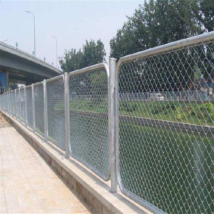 勾花網(wǎng)護(hù)欄采用鉤編而成,具有編織簡潔、網(wǎng)孔均勻、網(wǎng)面平整、美觀大方、網(wǎng)幅寬、絲徑粗、不易腐蝕、壽命長、實(shí)用性強(qiáng)等特點(diǎn)。由于網(wǎng)體自身具有很好的彈性、能緩沖外力沖擊而且所有部件均經(jīng)過浸理(浸塑或噴塑、噴漆),現(xiàn)場(chǎng)組合安裝不需要焊接。防腐性好,是籃球場(chǎng)、排球場(chǎng)、網(wǎng)球場(chǎng)等體育場(chǎng)所操場(chǎng)校區(qū)以及經(jīng)常受外力沖擊監(jiān)獄機(jī)場(chǎng)看守所等場(chǎng)地選擇的很好的一種護(hù)欄網(wǎng)產(chǎn)品。勾花網(wǎng)護(hù)欄還廣泛用于飼養(yǎng)雞、鴨、鵝、兔及動(dòng)物園圍欄,機(jī)械設(shè)備的防護(hù),高速公路護(hù)欄,馬路綠化帶防護(hù)網(wǎng)。該絲網(wǎng)在制作成箱子狀的容器后,用亂石等填滿網(wǎng)箱,可用于保護(hù)和支持海堤、山坡、路橋、水庫及其他土木工程,是防洪和抗洪上好材料。