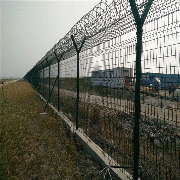 機(jī)場(chǎng)焊接網(wǎng)隔離柵上面我們安裝上鋒利的蛇腹?fàn)畹镀叹W(wǎng),刀片刺網(wǎng)有著鋒利的刀片,是采用鍍鋅板或不銹鋼經(jīng)刀片刺網(wǎng)沖壓機(jī)沖壓,再和高張力鋼絲做芯線組合而成。既美觀大方,又使人不寒而栗。以前經(jīng)常被人們應(yīng)用于圍墻之上,以防止人們翻越圍墻?,F(xiàn)在已經(jīng)被人們和護(hù)欄網(wǎng)完美的結(jié)合,稱為“刀片刺網(wǎng)防護(hù)網(wǎng)”,大家可以想象一下,高高的互聯(lián)網(wǎng)本來就不是那么好翻越的,在加上上面有那鋒利的刀片,想想連手都沒有地方放,更不要提爬上去并翻過刀片刺網(wǎng)了,那可以說是不可能的事情了。