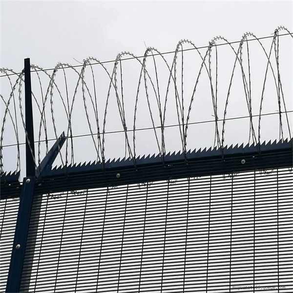 配件:一般配有方柱(60x60mmx3mm)跟護(hù)欄網(wǎng)片同樣的表面處理方式,通過螺絲將扁鐵和柱子,連接起來,也就是說防護(hù)網(wǎng)的安裝幾乎不受任何地形的任何影響,可以預(yù)埋或者是通過法蘭盤與水泥地面固定,護(hù)欄頂部可以通過Y型柱配有片狀刺繩,普通刺繩,進(jìn)一步起到防護(hù)作用。