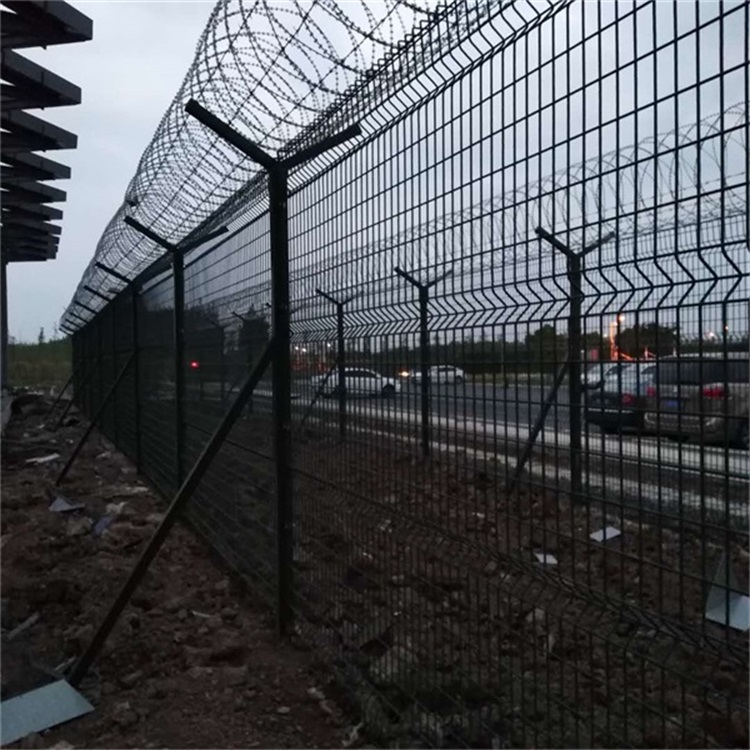 機(jī)場(chǎng)圍欄網(wǎng)的規(guī)格及用處!機(jī)場(chǎng)圍欄網(wǎng)是專門用于機(jī)場(chǎng)周圍的安全圍欄產(chǎn)品機(jī)場(chǎng)圍欄網(wǎng)是用5.0mm高強(qiáng)度低碳鋼絲焊接而成的圍欄網(wǎng)狀產(chǎn)品,篩孔尺度:,機(jī)場(chǎng)圍欄網(wǎng)也被稱為"Y型安全防御網(wǎng)",它是由V型支撐柱加強(qiáng)焊接網(wǎng),安全防盜銜接和熱浸鍍鋅刀片的鐵絲網(wǎng)組成,因而,機(jī)場(chǎng)圍欄網(wǎng)的安全防御水平很高,它廣泛用于機(jī)場(chǎng)和軍事基地等高安全性場(chǎng)所。