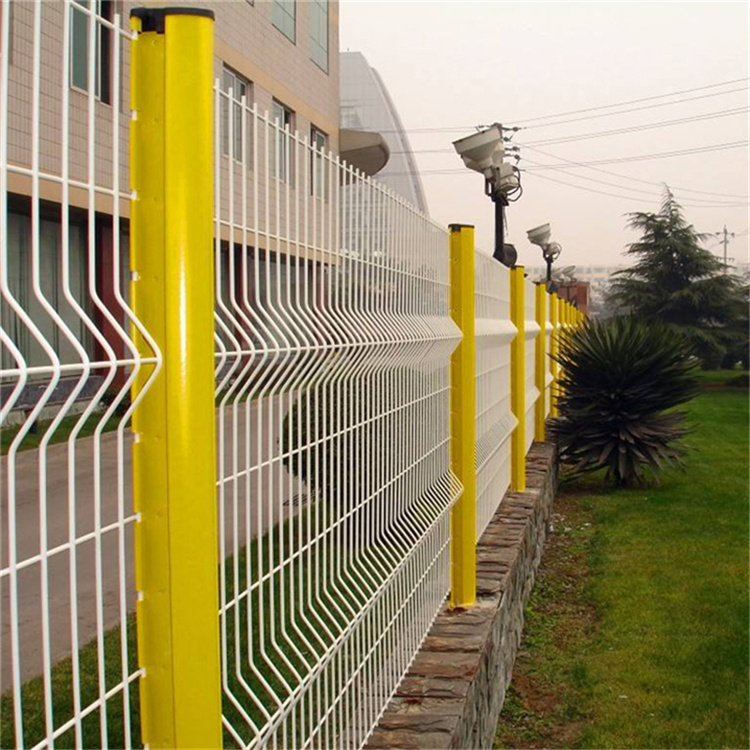 1、在立柱的設(shè)定好的高度將網(wǎng)片嵌入預先設(shè)計的凹槽使圍欄成為無法拆卸的整體。