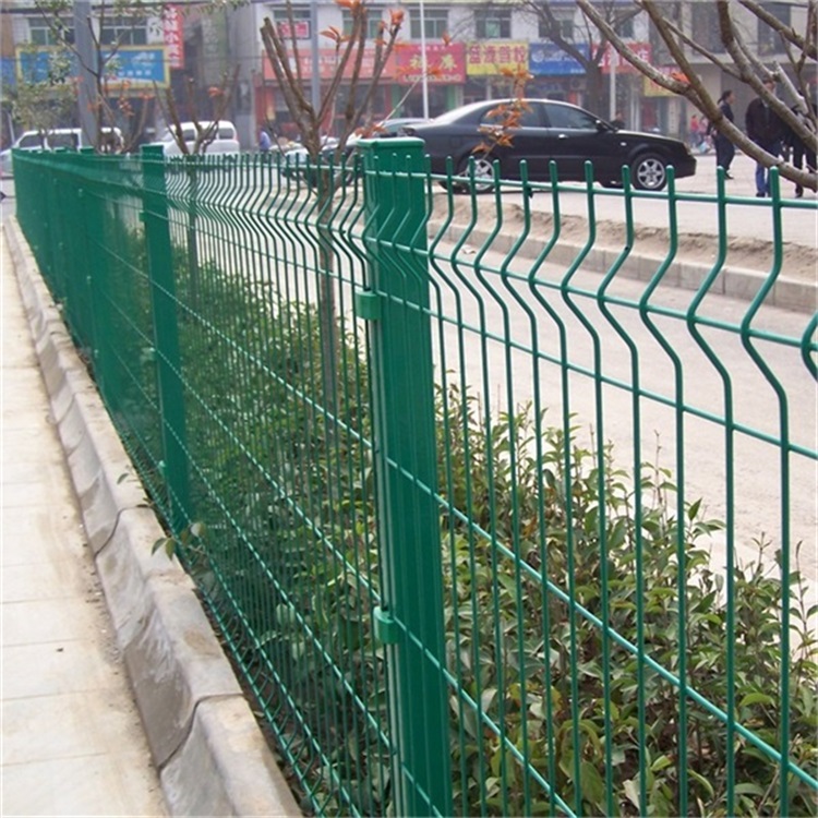 雙邊絲隔離網(wǎng)是隔離網(wǎng)產(chǎn)品中很普通的產(chǎn)品,相比較框架隔離網(wǎng)來說,省去了網(wǎng)片四周的邊框,對于一般防護(hù)場地來說既經(jīng)濟(jì)又實(shí)惠。雙邊絲隔離柵選用優(yōu)質(zhì)低碳冷拔鋼絲焊接而成,用連接附件與鋼管支柱固定。網(wǎng)格結(jié)構(gòu)簡練、美觀實(shí)用、便于運(yùn)輸、安裝不受地形起伏限制,特別是對于山地、坡地、多彎地帶適應(yīng)性極強(qiáng)。因價(jià)格便宜受得廣大客戶的青睞,適合大面積采用。我們?yōu)榱思訌?qiáng)雙邊護(hù)欄網(wǎng)的剛韌性和視覺美觀,對雙邊絲護(hù)欄進(jìn)行了改良,在雙邊絲隔離網(wǎng)上壓出二道或多道v型彎,這樣網(wǎng)片變得鋼韌了,視覺清新了。v型彎還可用于桃型柱隔離柵,框架隔離網(wǎng)等。