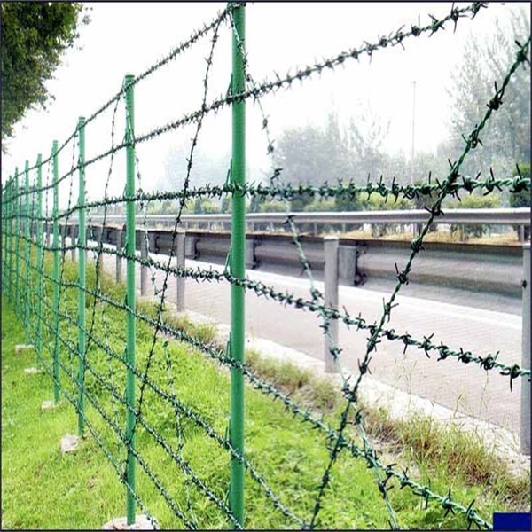 噴塑刀片刺繩 由銳利尖角鍍鋅鋼板或不銹鋼薄板做刀片,高張力鋼絲做芯線組合而成...  刀片刺繩網(wǎng) 用途:用于草場(chǎng)邊界、鐵路、高速公路的隔離防護(hù)以及園林公寓,機(jī)關(guān)單位,監(jiān)獄,哨所,邊防等的圈禁防護(hù)。 [ 查看詳情 ]