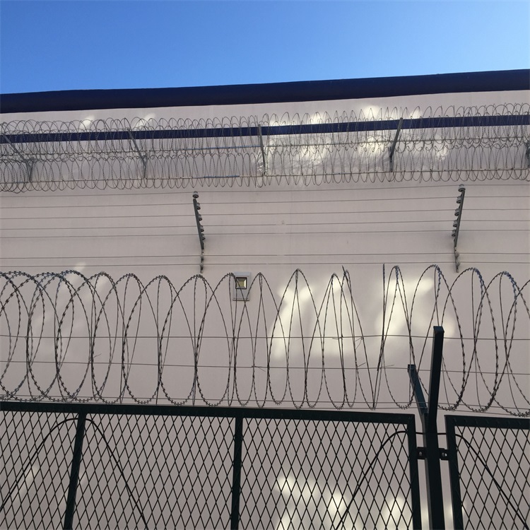 刀片刺網(wǎng)  蛇腹形刀刺網(wǎng)  看守所隔離網(wǎng) : 蛇腹形刀刺網(wǎng) 呈螺旋狀,材質(zhì)一般分為熱鍍鋅材質(zhì)和不銹鋼材質(zhì),結(jié)... (5)安裝好支架立柱了,先把要安裝刀片刺繩的拉絲給固定上,然后利用拉絲的支撐力來(lái)安裝刀片刺繩,并用專用的卡扣、卡鉗進(jìn)行固定。 [ 查看詳情 ]