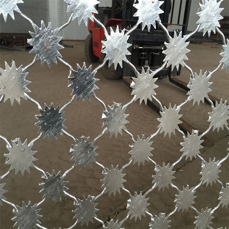如何更牢固的安裝刀刺網(wǎng) 刀刺網(wǎng)安裝步驟:測量放線→基礎(chǔ)開挖→基礎(chǔ)澆筑→隔離帶、隔離網(wǎng)及其他設(shè)施安裝。 1、刀刺網(wǎng)立柱間距3m,邊框...由于其高墻的防攀爬效果正在更多的被人們應(yīng)用到監(jiān)獄系統(tǒng),在安裝過程中一定要注意刀刺的鋒利性,穿戴防護措施以避免被刀刺劃傷。 [ 查看詳情 ]