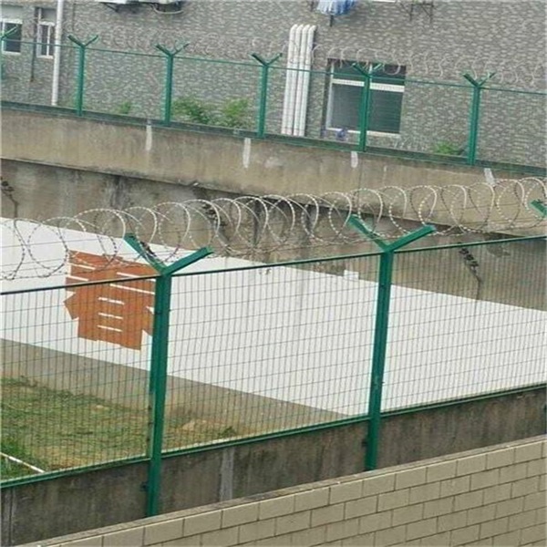 監(jiān)獄圍墻加裝隔離網(wǎng)是V型支架立柱,加強型焊接片網(wǎng),安全防盜連接件和熱鍍鋅刀片刺籠組成,強度和安全防御性級別很高。近年來,被廣泛應(yīng)用在監(jiān)獄,軍事基地等高安全場所。