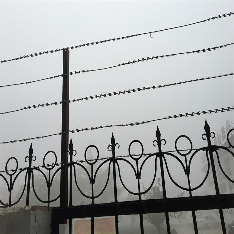 刀片刺繩在使用過程中,多數(shù)時候都是搭配安裝在鐵絲網(wǎng)圍欄的頂端,起增強防護作用的,如果作為墻的防護,安裝一定要牢固,防止一些外在的因素發(fā)生墜落。